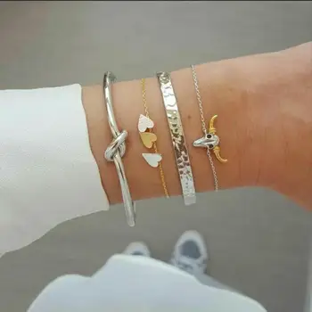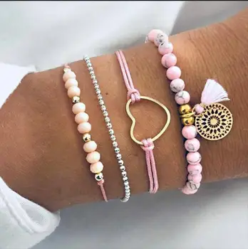 Tocona 30 Style bohême coeur gland bracelets pour femme lune carte creuse géométrie coquille perle cristal clair pierre bijoux