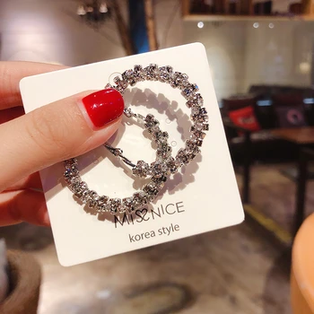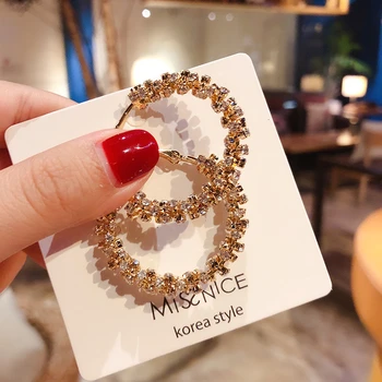 Japon et corée nouveau géométrique rond rétro exagéré cristal boucles d’oreilles pour femme bijoux de mode en gros cadeau de fête