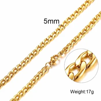 Collier homme rond Miami lien cubain chaîne ton or et argent acier inoxydable Punk garçon mâle Colar cadeaux 24″