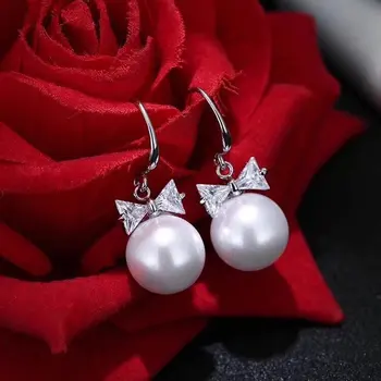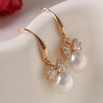 Exquise mode haute qualité zircon boucles d’oreilles imitation strass perle arc pendentif boucles d’oreilles en gros