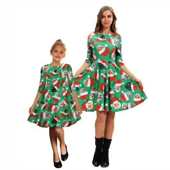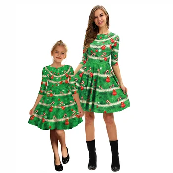 Mère fille correspondant vêtements dames bébé fille robe mère fille maman et moi robes col rond cinq manches famille vêtements