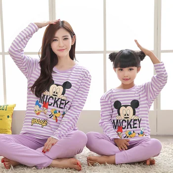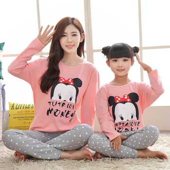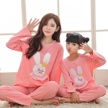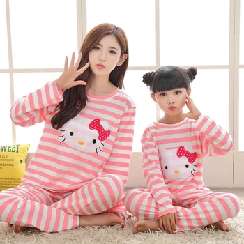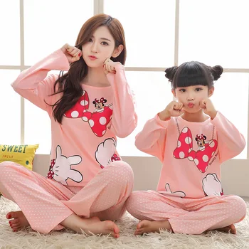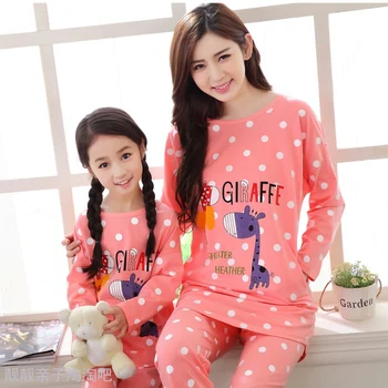 Pyjamas bébé famille correspondant Pyjamas costume 2017 automne hiver à manches longues mère et fille vêtements à pois Ropa Mama E Hija