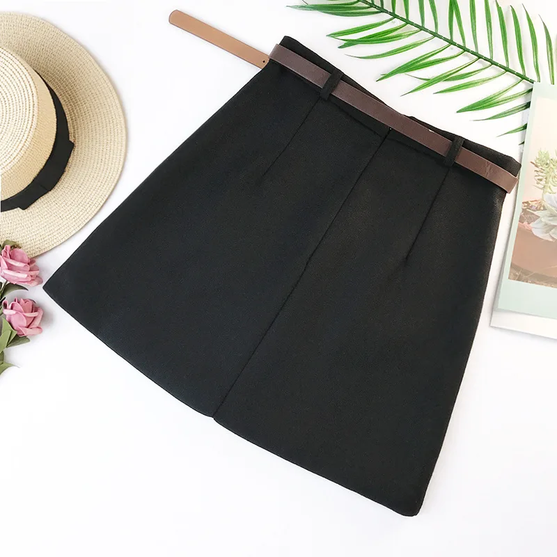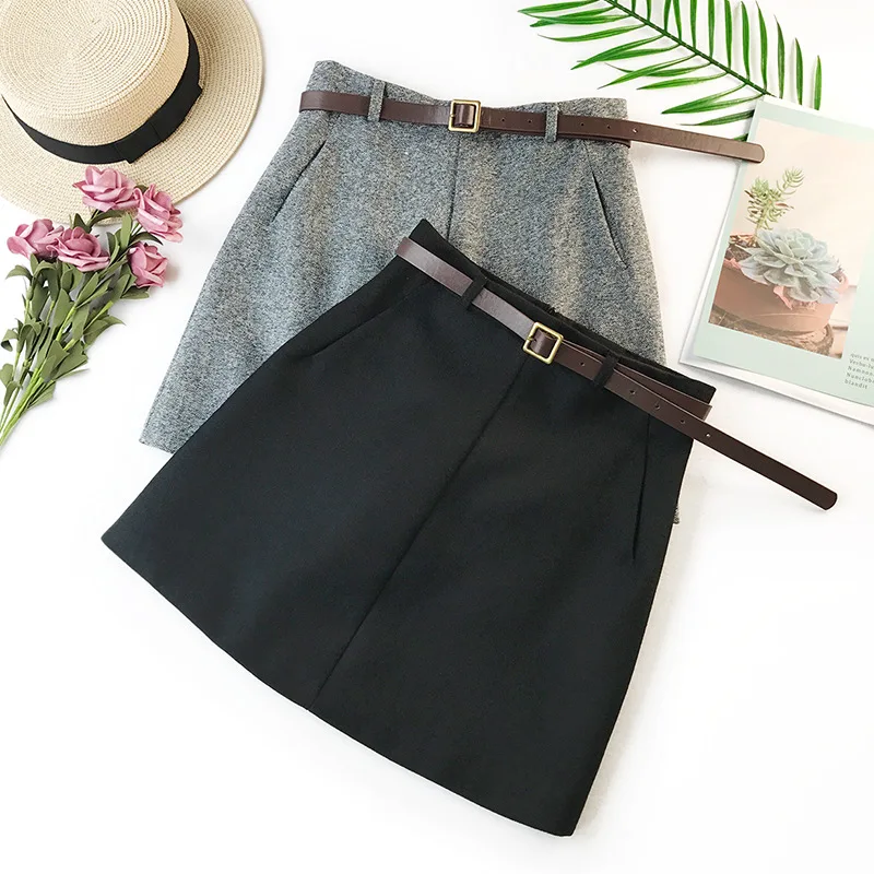 2019 printemps nouveauté Vintage tempérament taille haute a-ligne jupes de bureau femmes avec ceinture en laine Mini jupe livraison gratuite