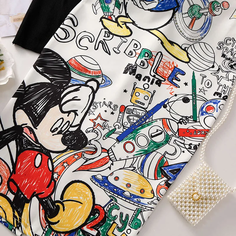 Femmes jupe crayon 2019 nouveau dessin animé souris imprimer taille haute mince jupes jeune fille été grande taille japon femme Falda SP534